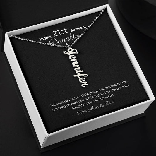 21st Birthday Personalised Vertical Name Necklace