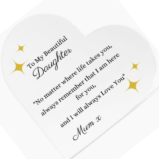 To My Beautiful Daughter from Mum Printed Heart Shaped Acrylic Plaque