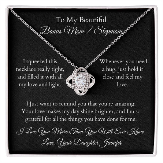 Personalised To My Beautiful Mom / Bonus Mom / Stepmom Love Knot Necklace