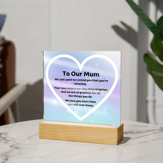 To Our Mum Acrylic Plaque With Wooden Base or LED Option