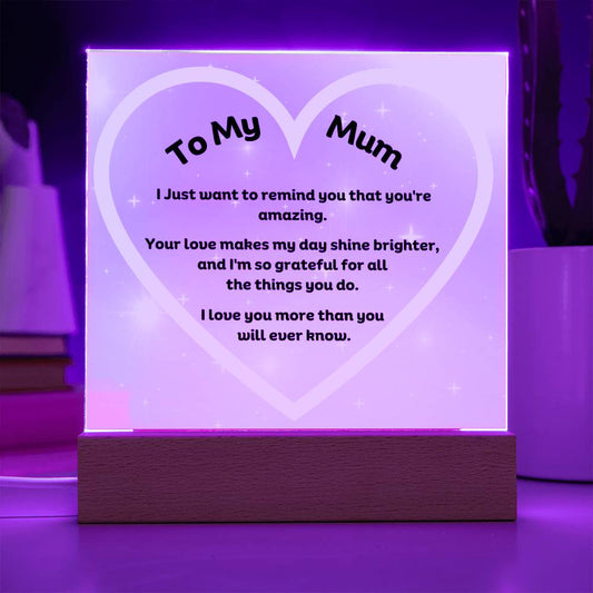 To My Mum Acrylic Plaque With Wooden Base or LED Option