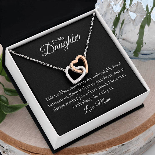 To My Daughter Interlocking Hearts Necklace, Love Mum