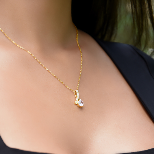 18k Gold Necklace Pendant Embellished With Cubic Zirconia Crystals