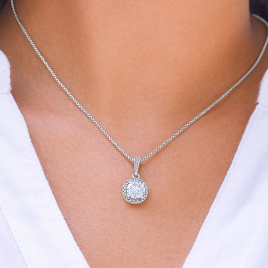 14k White Gold Finish Pendant With Cushion Cut CZ Crystals