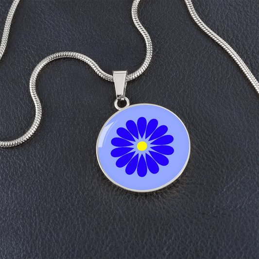Engraved Blue Daisy Disc Necklace Personalised Floral Jewellery