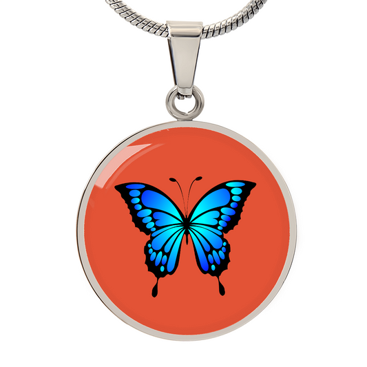 Stunning Blue Butterfly Personalised Engraved Circle Necklace