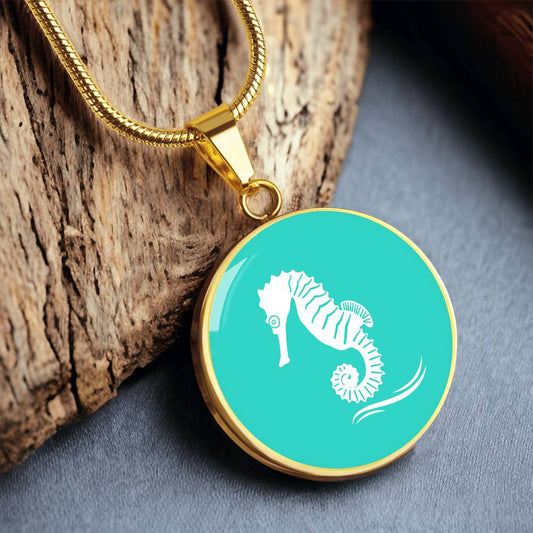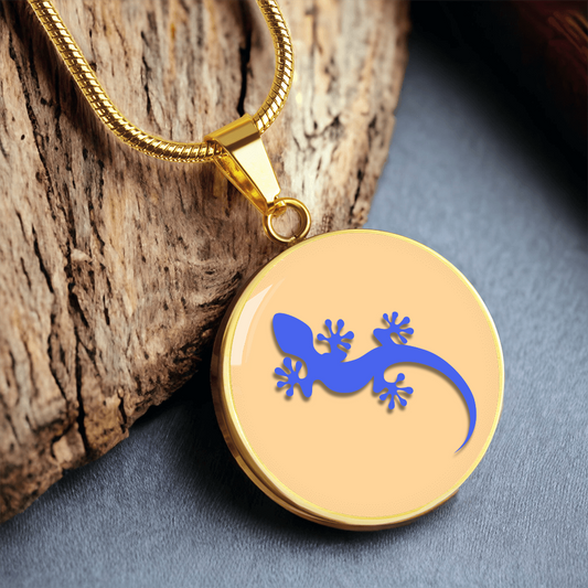 Electric Blue Gecko Personalised Engraved Circle Necklace
