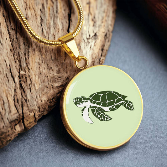 Lime Cream Sea Turtle Dainty Personalized Engraved Circle Necklace