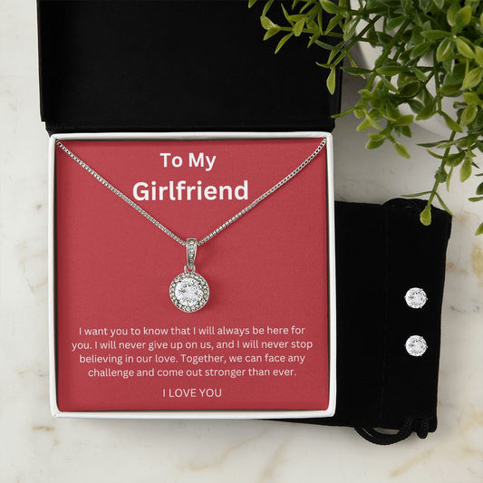 To My Girlfriend Eternal Hope Necklace and Cubic Zirconia Earring Set