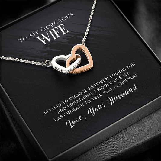 To My Gorgeous Wife Interlocking Hearts necklace